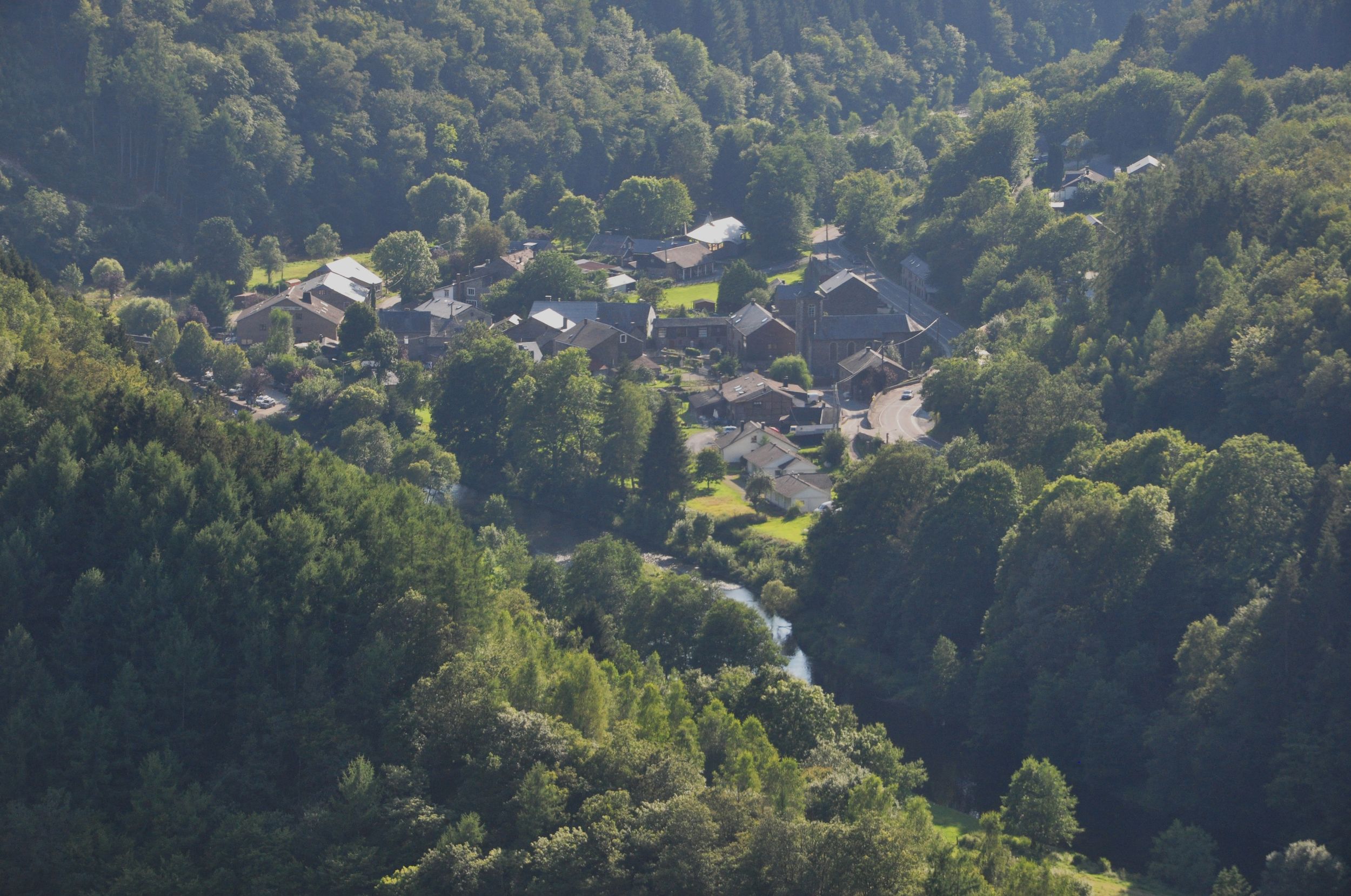 Der Blick von Les Crestelles aus bietet uns einen Vordergrund, der durch das starke Gefälle des Tals geprägt ist. Im Hintergrund ist der Talboden durch seine Schwemmebene und die Ansiedlung des Dorfes in einer besonders ausgeprägten Flussbiegung gekennzeichnet. Danach folgt der gegenüberliegende Hang, der von abwechselnden Laub- und Nadelbäumen bewachsen ist, die das ganze Jahr über eine bemerkenswerte Farbpalette bieten. Im Hintergrund (vom Aussichtspunkt aus links) beginnt schließlich die ruhigere Landschaft des Grasland-Plateaus.