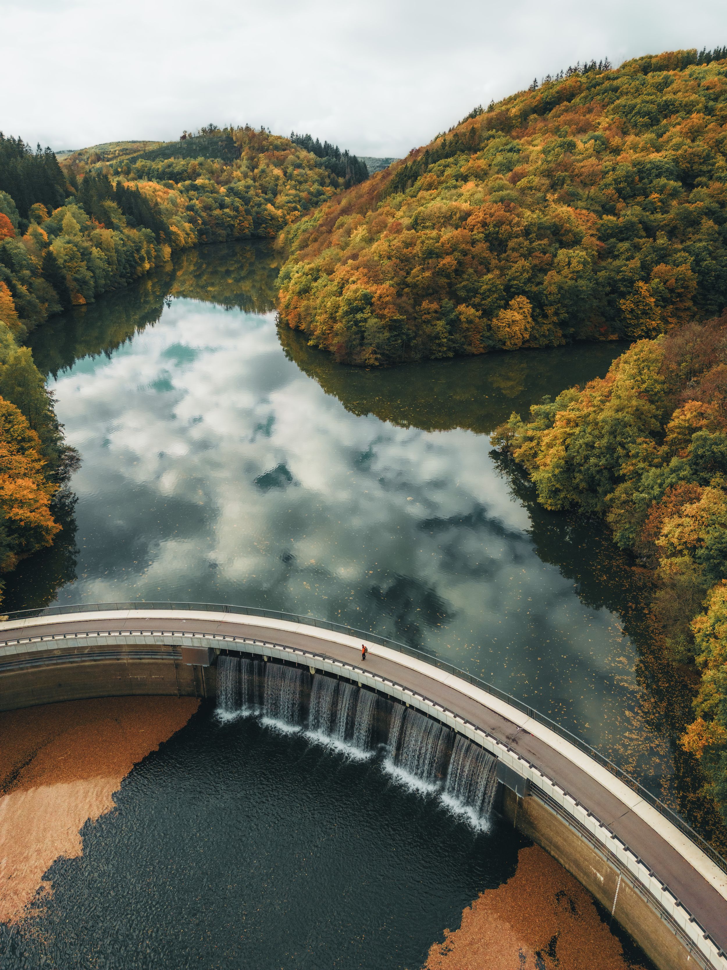 Entdecken Sie den Staudamm von Esch-sur-Sûre, ein Meisterwerk der Ingenieurskunst und Innovation, dessen Bogenkonstruktion und Betonbauweise seit 1955 die Landschaft des Éislek prägen.