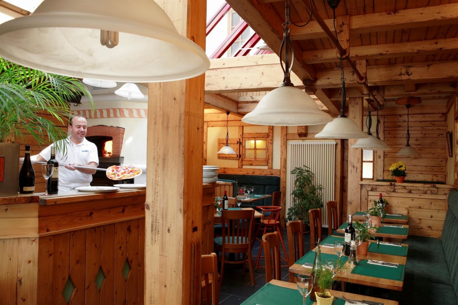 Rustikales Restaurant mit Pizzeria im Hotel Petry in Vianden, Holzofenpizza und saisonaler Küche.