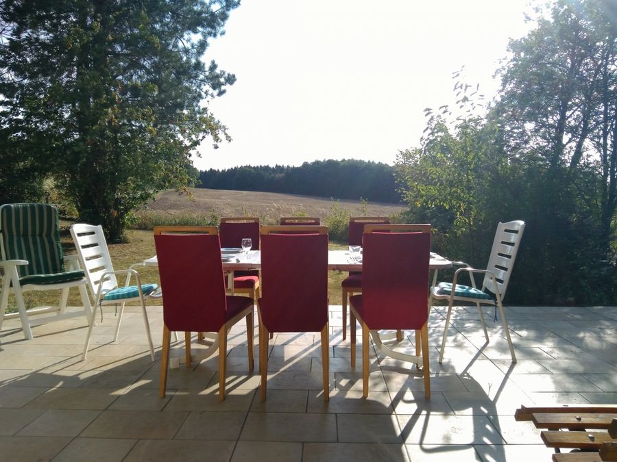 Unser kleines, gemütliches Ferienhaus besteht aus einem Wohnzimmer mit Kamin mit voll ausgestatteter Küche, einem Schlafzimmer mit Doppelbett, zwei Schlafzimmern mit Einzelbetten, einer Dusche und einer separaten Toilette. Es verfügt über eine 12 m2 große Terrasse mit einem schönen Blick auf die Öslinger Kuppen. Der große blumenreiche Garten mit Kräuterbeet und Obstbäumen lädt ein zum erholsamen Entspannen. An das Haus mit einem Innenbereich von etwa 100 m2 schließen sich eine Garage und ein Stellplatz an. Ausgestattet mit Kabel-TV, Herd, Spülmaschine, Waschmaschine und Wäschetrockner bietet es allen notwendigen Komfort für einen angenehmen Aufenthalt.