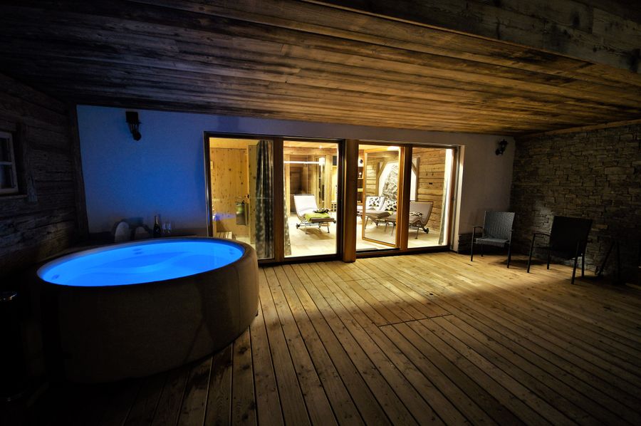 Unsere Chalets sind sehr luxuriös ausgestattet. Auch an Tagen, an denen das Wetter eher zum Daheimbleiben auffordert, soll es Ihnen an nichts fehlen. Nehmen Sie nach der Sauna ein Bad im Außenwhirlpool, relaxen Sie anschließend auf einer Wellnessliege oder gönnen Sie sich eine Massage in der extra dafür vorgesehenen Massagehütte.