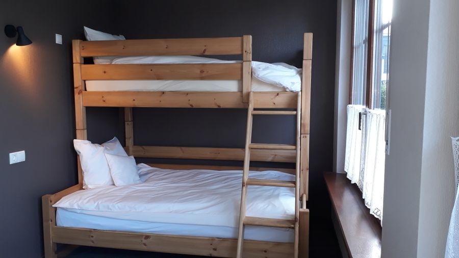 - Schlafzimmer mit Doppelbett und Etagenbett für 3 Personen