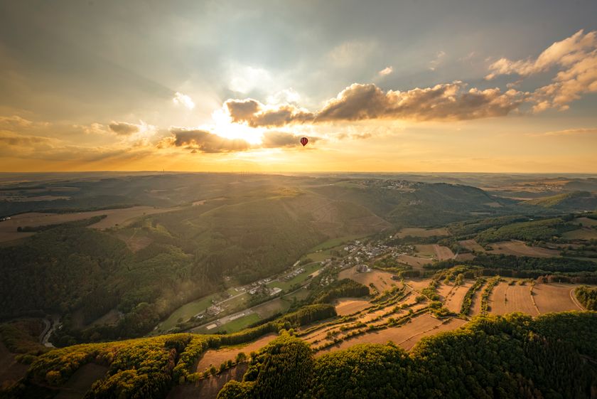 Nach einigen hundert Metern entlang der Our verlässt der Wanderweg Bettel in Richtung Süd-Osten. Jetzt geht es nach oben, auf den Marxberg. Unterwegs treffen Sie auf einen Aussichtspavillon. Von dort aus genießt man bei klarem Wetter eine wunderschöne Aussicht über mehrere Dutzend Kilometer.