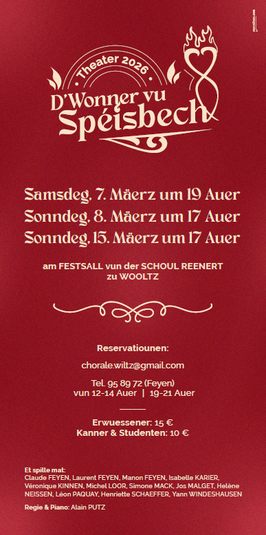 D‘Chorale Municipale Ste Cécile Wolz invitéiert och dëst Joer ërem op hiren traditionnelle Musiktheater.