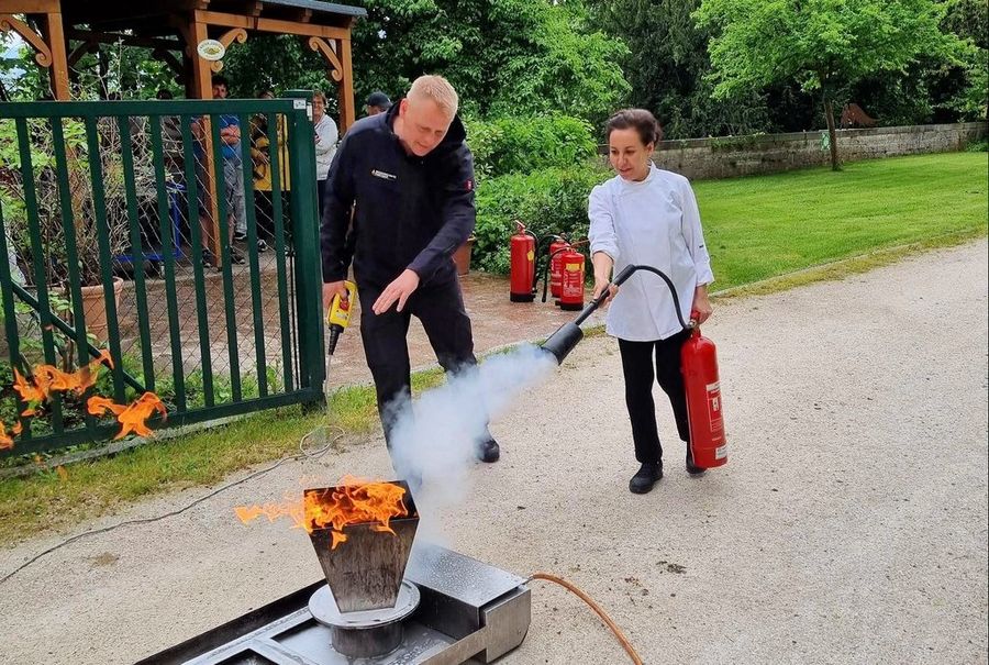 Anschließend geht es in die Praxis: Unter Anleitung haben Sie die Möglichkeit, selbst einen Feuerlöscher zu bedienen und den Umgang damit zu üben. So gewinnen Sie Sicherheit und wissen im Notfall, was zu tun ist.