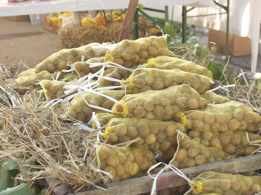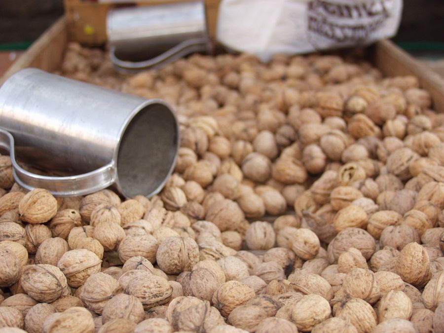 The day before the Nutmarket, each association will start to harvest the nuts which they will need for the nut-market. Like in the previous years, the harvest of nuts will be proceeded with the help of a joggle-machine. This machine makes a quick and easy harvest possible. Several associations, however, still pick the nuts the traditional way with long wooden sticks. After "pouring" them, they need washing and drying.