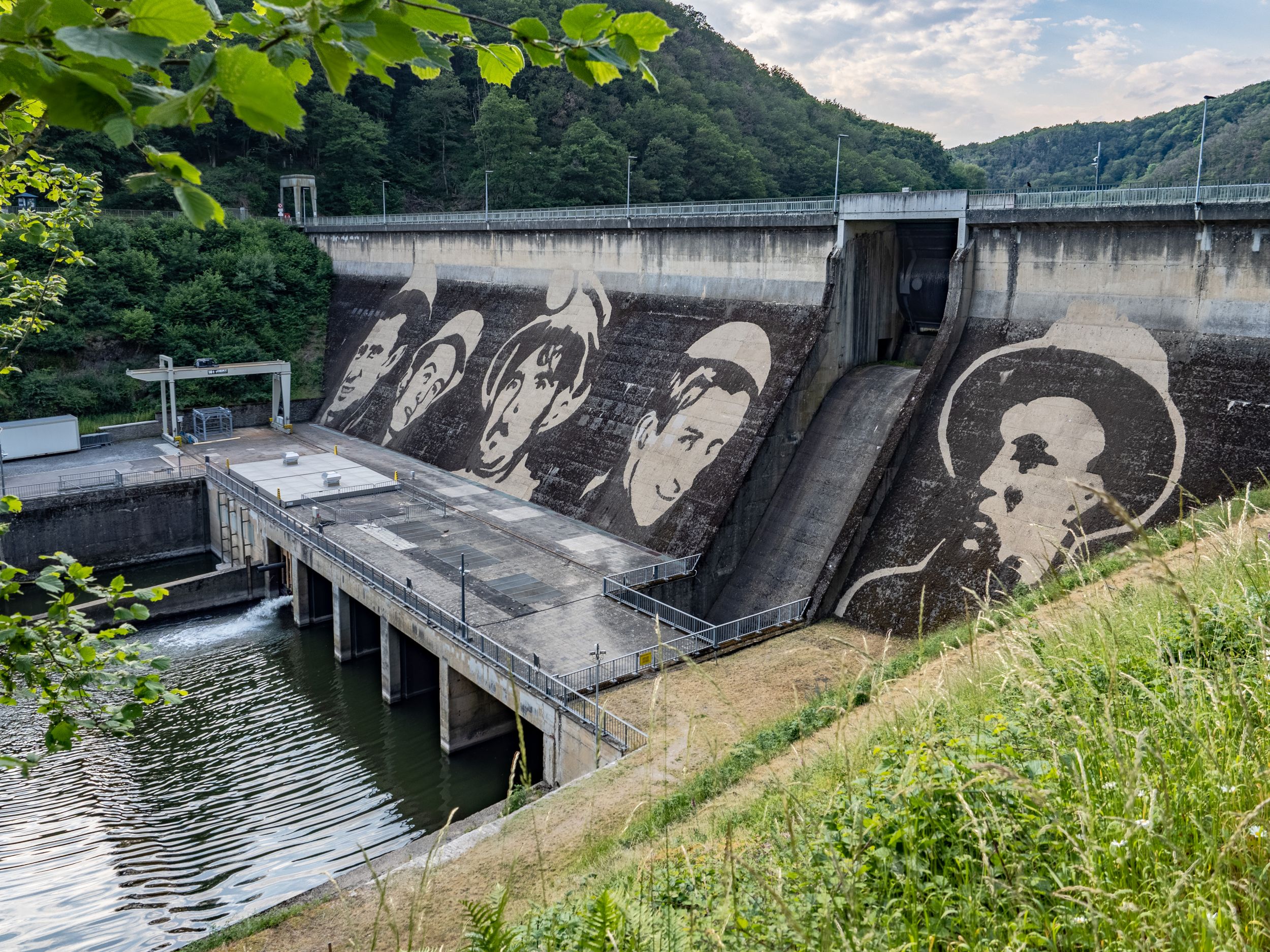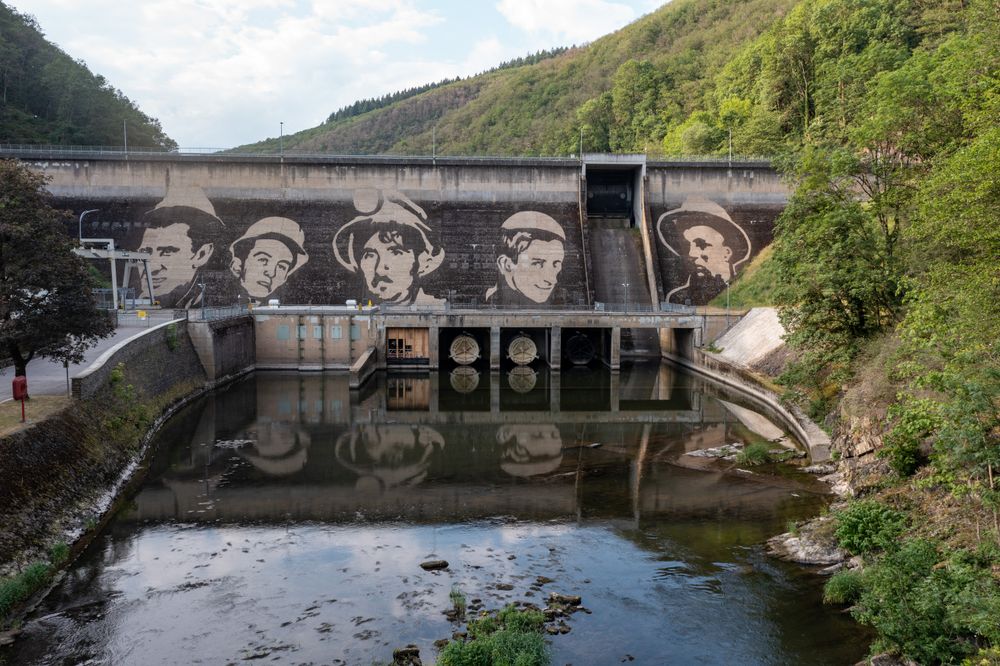 Sur l'initiative de l'association artistique ViArt asbl et en collaboration avec la SEO (Société Electrique de l'Our), l'artiste allemand Klaus Dauven crée une œuvre d'art de "Reverse Graffiti" avec l'aide de la société Kärcher. Le motif représente les visages de cinq ouvriers qui ont participé à la construction de la structure. Le barrage, avec son bassin inférieur, son bassin supérieur et ses installations souterraines de centrale de pompage-turbinage, se trouve à Vianden. Plongez-vous dans cette fusion fascinante entre l'art et l'architecture et découvrez cette œuvre d'art unique qui rend hommage à l'histoire et aux personnes qui ont participé à la construction de l'ouvrage.