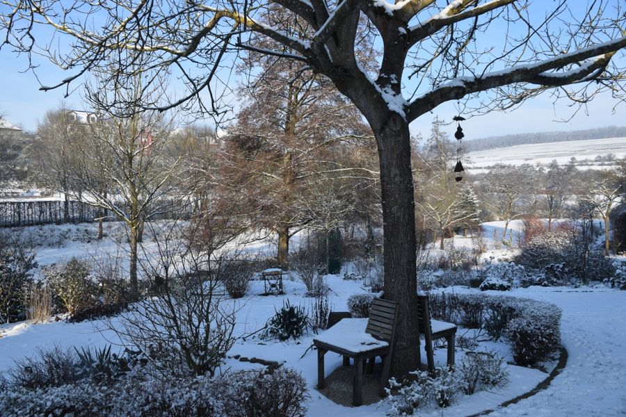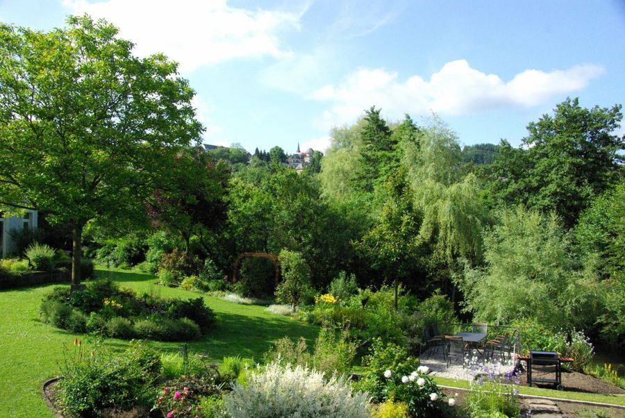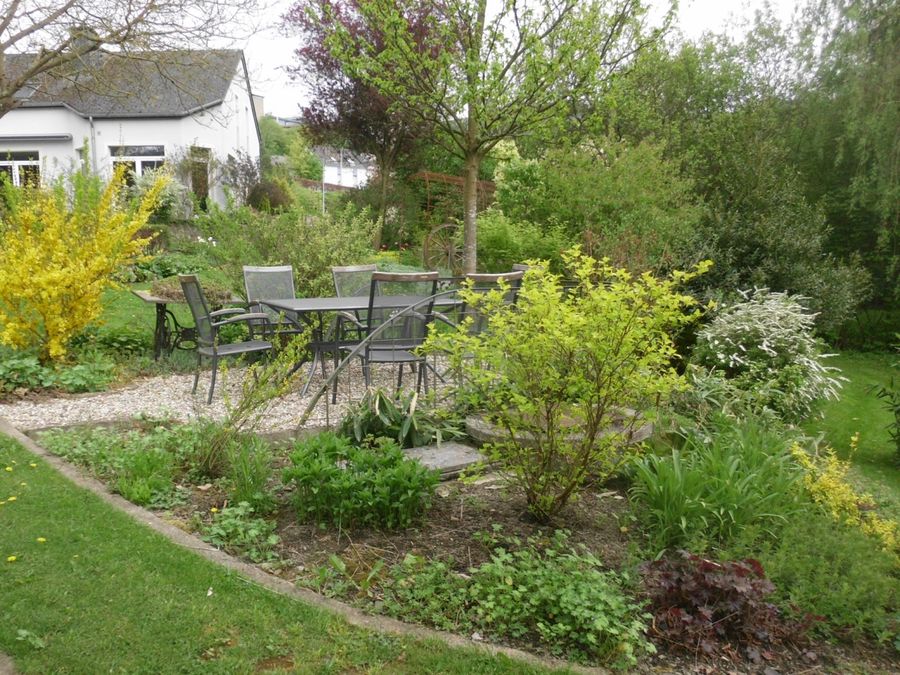 Dans le jardin le long de la Wiltz, une terrasse est mise à disposition exclusivement pour nos invités. Vous pourrez y passer des moments de détente et clôturer la journée avec un barbecue (au charbon de bois).