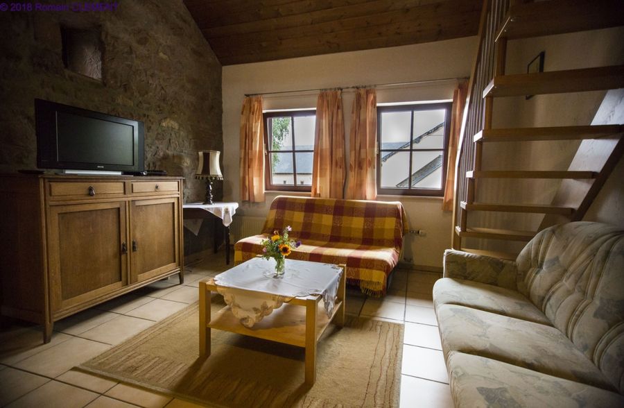 1 gîte à la ferme confortable pour 2 à 4 personnes dans l'enceinte de l'exploitation, située dans un cadre de verdure au bord de la localité. Situation centrale entre Mersch et Ettelbruck. Salle de séjour pour les hôtes.