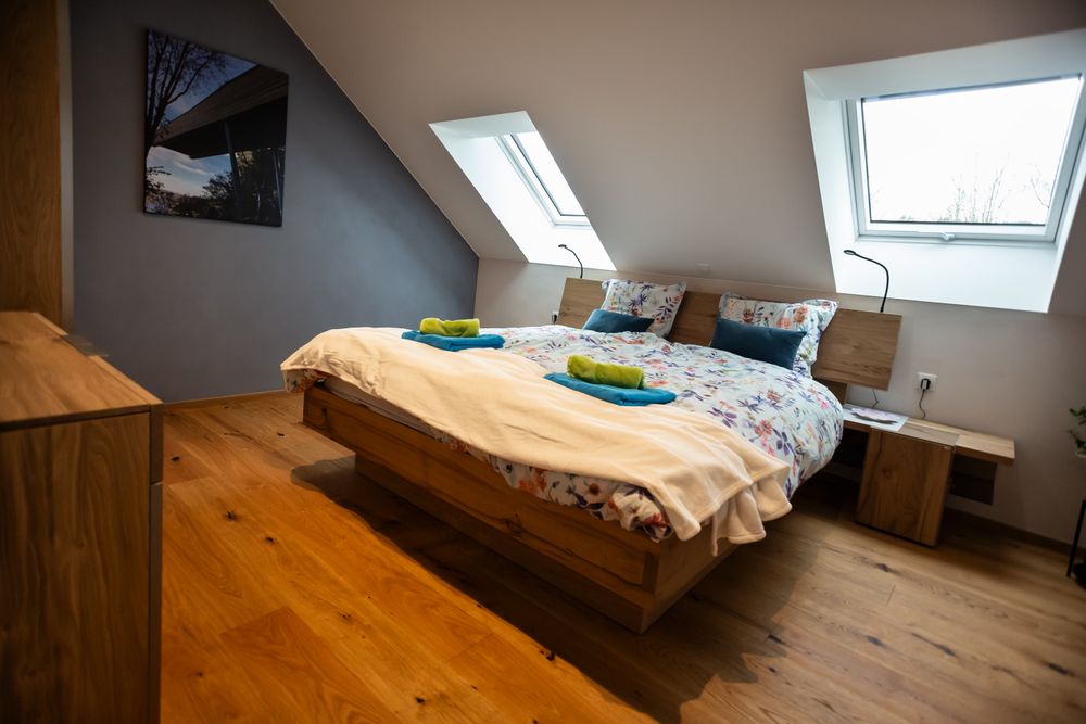 La maison respecte les méthodes de construction écologiques et peut accueillir des cyclistes et des personnes à mobilité réduite. Le gîte peut accueillir jusqu’à 8 personnes (200m2) : cuisine-séjour entièrement équipée, 2 salles de bain, 4 chambres, balcon et terrasse.