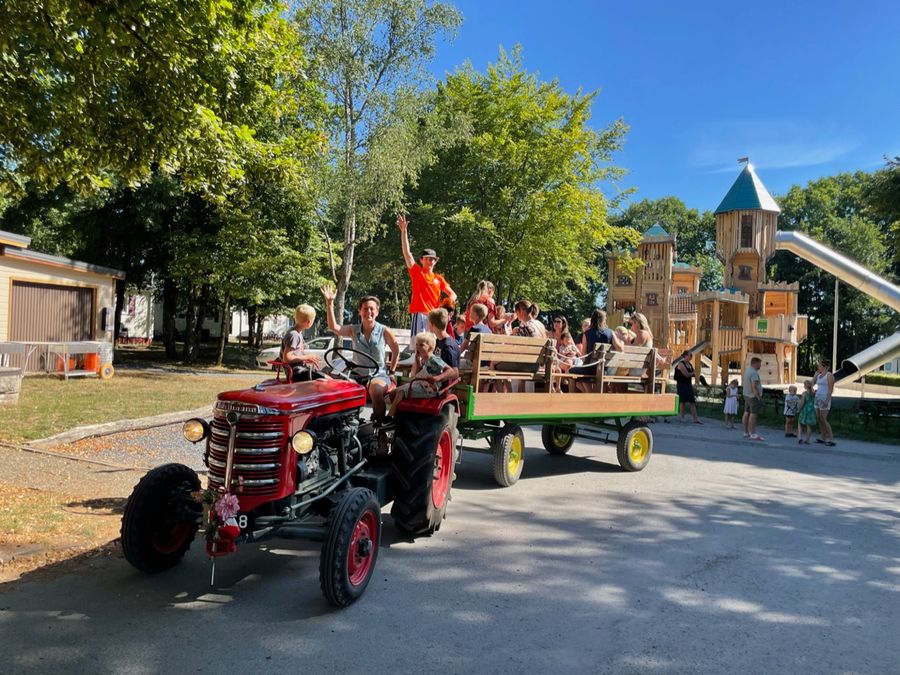 Au Camping Fuussekaul au Luxembourg, vous trouverez tous les infrastructures pour des vacances inoubliables et sans soucis. Il y a une piscine extérieure, plusieurs aires de jeux extérieures, une aire de jeux intérieure, un zoo pour enfants, un restaurant, un snack-bar et bien plus encore ! L'équipe d'animation très motivée vous propose de nombreuses activités et excursions pendant les longs week-ends et les vacances scolaires. Partez à la découverte de la région et faites un tour avec nos anciennes tracteurs. Le point fort de la journée !
