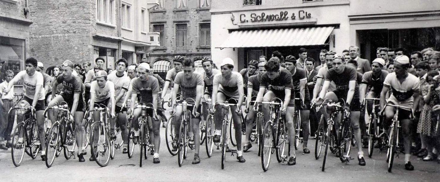 Départ du GP Poly Greisen pour débutants le 05.08.1951 Place de la Libération à Diekirch, première course organisée par le Velo Club Diekirch (Archives Andy Ferrari)