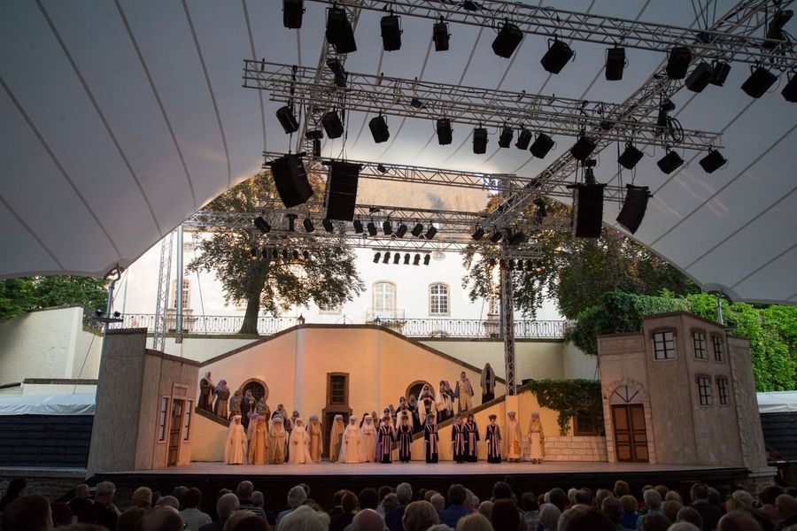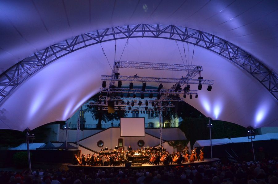 Evénements internationaux dans l’amphithéâtre avec le château de Wiltz en toile de fond.