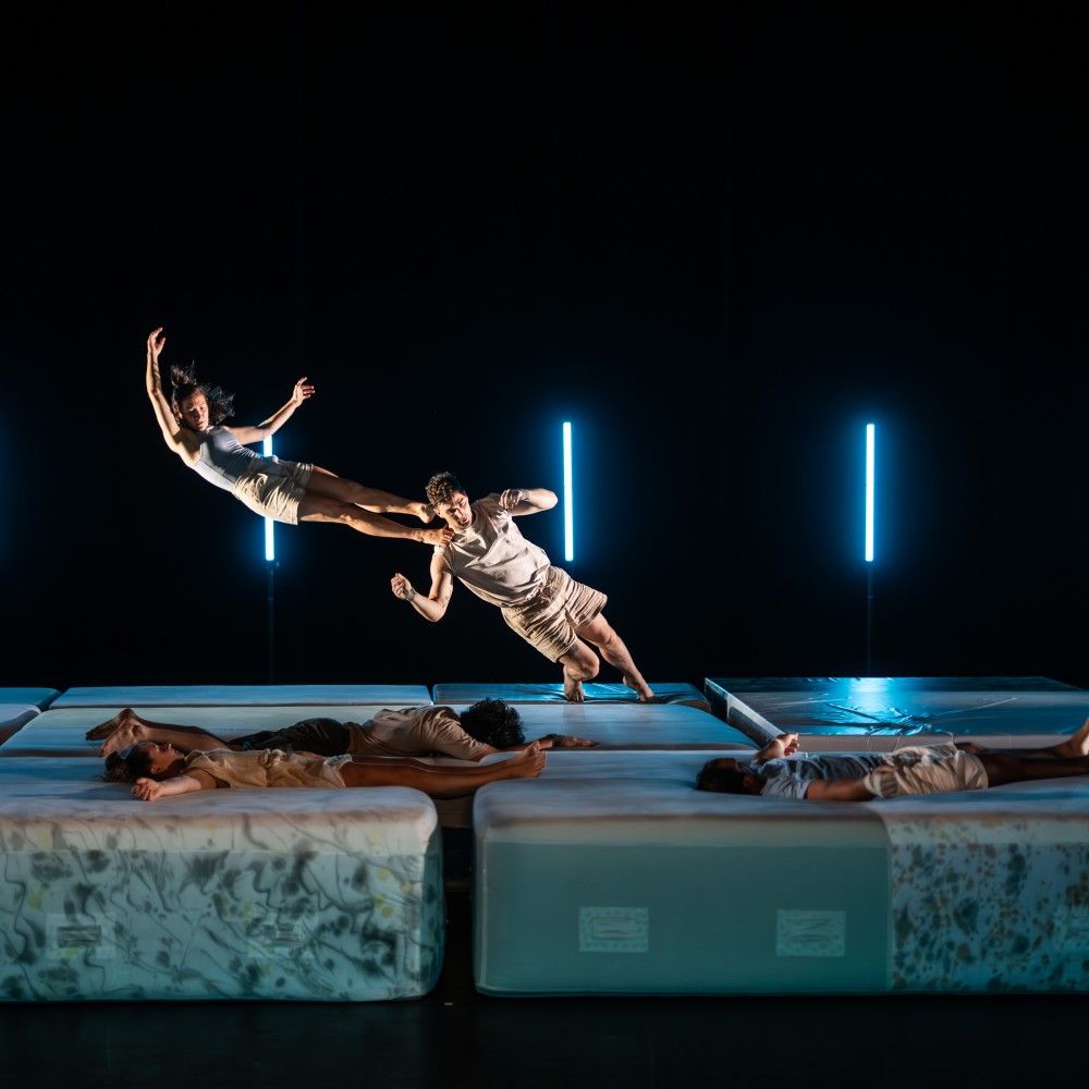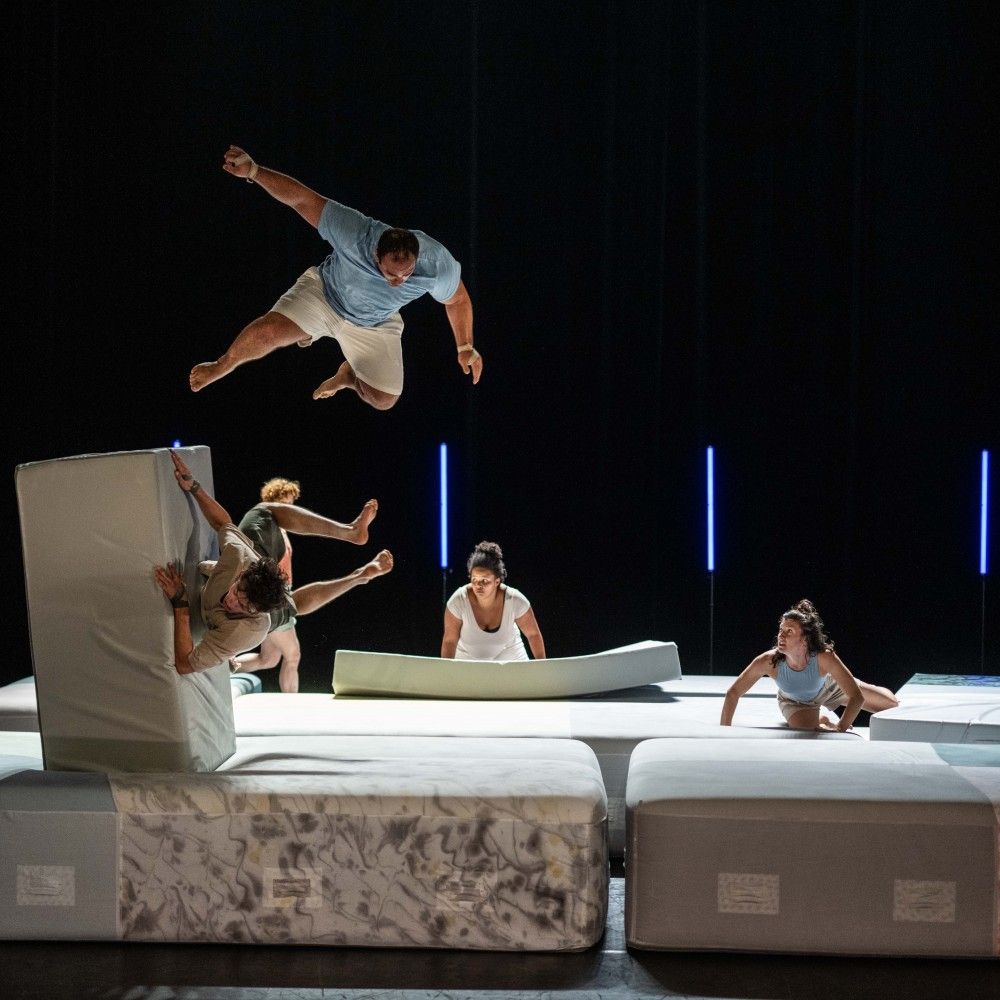 Sans appui, sept acrobates s’élancent dans le vide et tombent, tombent encore… chaque fois un peu mieux, chaque fois un peu plus loin. Les artistes se lancent des défis, se poussent à prendre des risques, car pour progresser, il faut d’abord avoir le courage d’échouer. Qui comprend mieux l’art de tomber qu’un artiste circassien ? Un spectacle de cirque mêlant acrobaties spectaculaires, réflexion sur la pression de la performance, la beauté de l’échec et la liberté qui en découle.