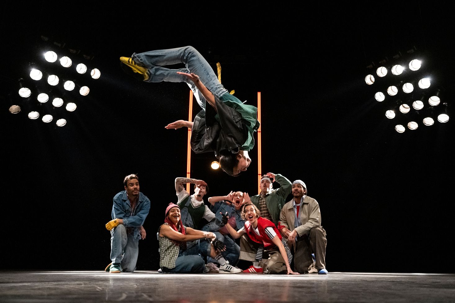 Une œuvre d'art totale pleine de dynamisme, d'expression et de suspense ! Avec « Warriors », Njagui Hagbe plonge le public dans un univers électrisant entre passé et futur. Dans un flashback chargé de funk, il reprend ce qui a façonné son âme : le hip-hop dans sa forme la plus pure et la plus dansante. Ce spectacle énergique est plus qu'un simple hommage, c'est un feu d'artifice visuel. Njagui fusionne l'esthétique puissante des années 80 avec deux légendes du cinéma : West Side Story et Guerriers de la Nuit. Ce qui commence comme confrontation devient une symphonie de corps, de rythmes et de communauté. Neuf talents exceptionnels font vibrer la scène – avec des styles alliant hip-hop, break dance, lock dance, house dance et jazz moderne !