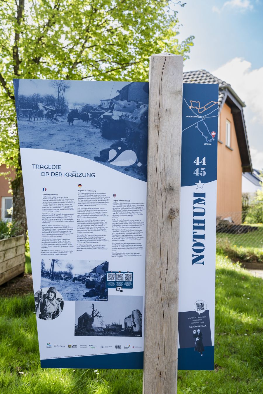Le sentier commémoratif Nothum 44/45 est un parcours circulaire facile de 1,6 km de long, qui, avec plusieurs stations, rappelle les événements de cette période. Ceux qui prennent le temps de lire tous les panneaux d'information et d'écouter les supports audio complémentaires devraient prévoir environ une heure et demie.