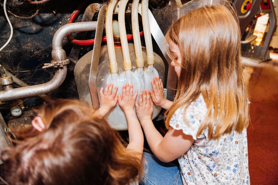 La visite commence dans l’étable. Les enfants découvrent les vaches, observent leur manière de vivre et comprennent ce dont elles ont besoin pour se sentir bien. Le bien-être animal est au cœur du travail de la ferme Hans Haff, et Sandra l’explique avec des mots simples et beaucoup de bienveillance.