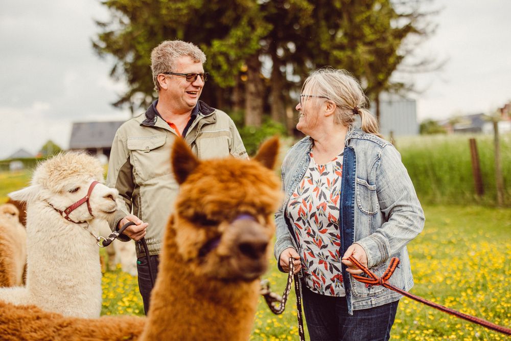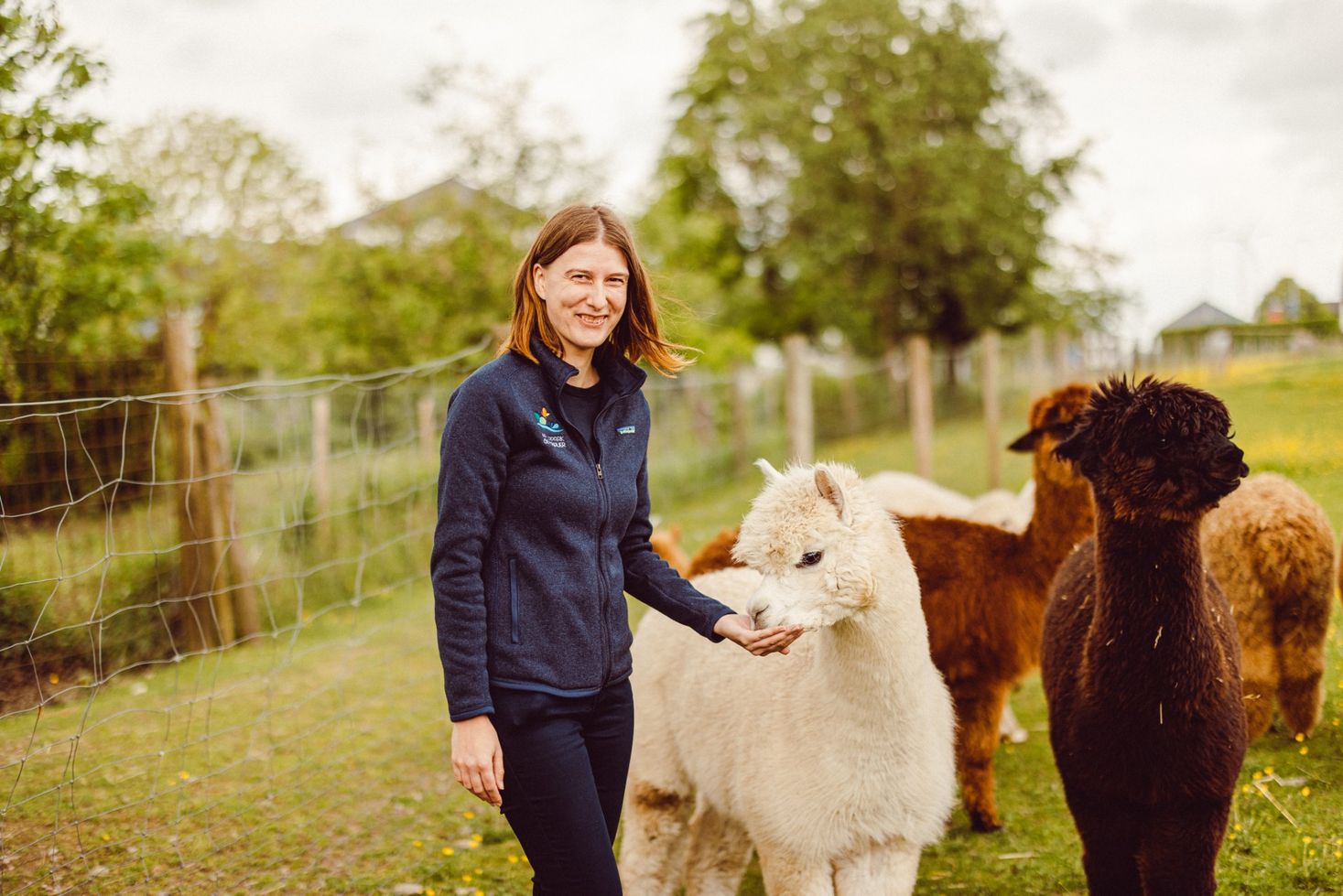 The visit to the alpacas from the Upper Sûre Nature Park begins at the farm, where participants can view the stables and learn more about the animals’ care, origin, and behaviour. The group then moves to the pasture, where the alpacas are introduced. Together with Claudia, the farm owner, or her husband, guests learn how to calmly catch and prepare the animals, often a highlight that sets a cheerful tone.
