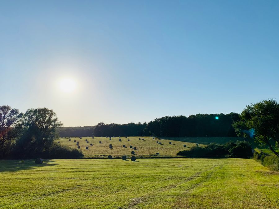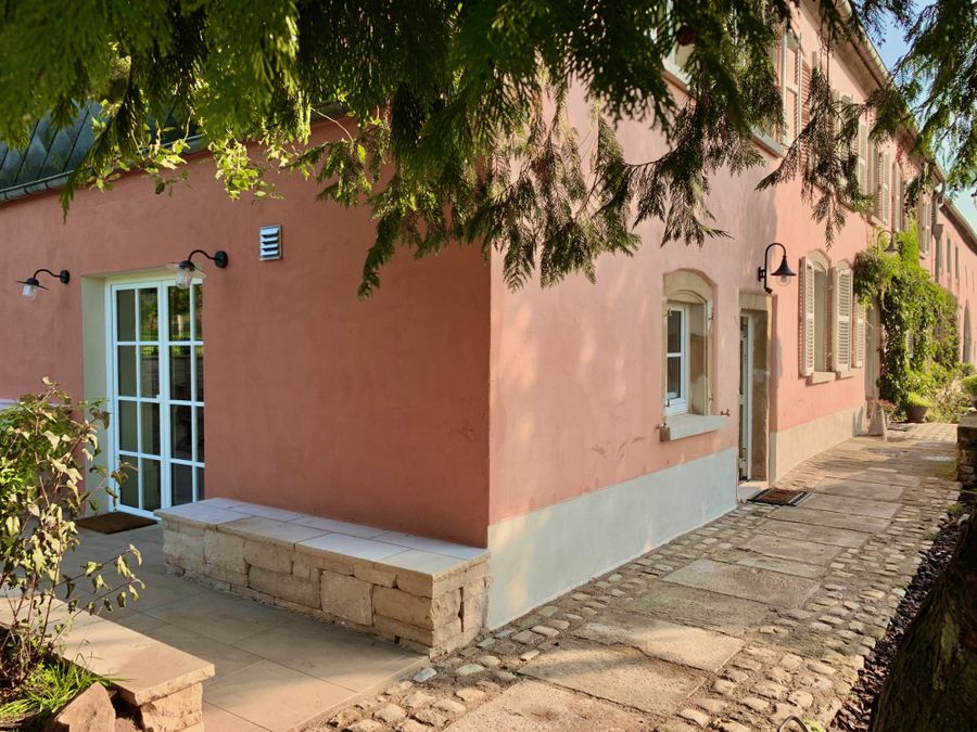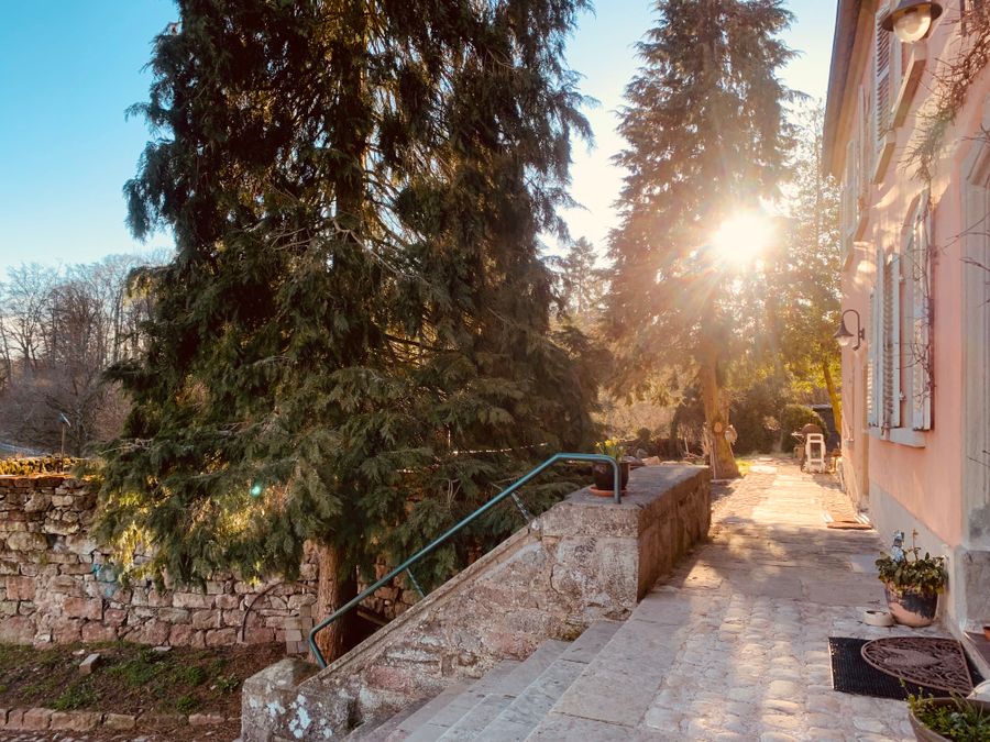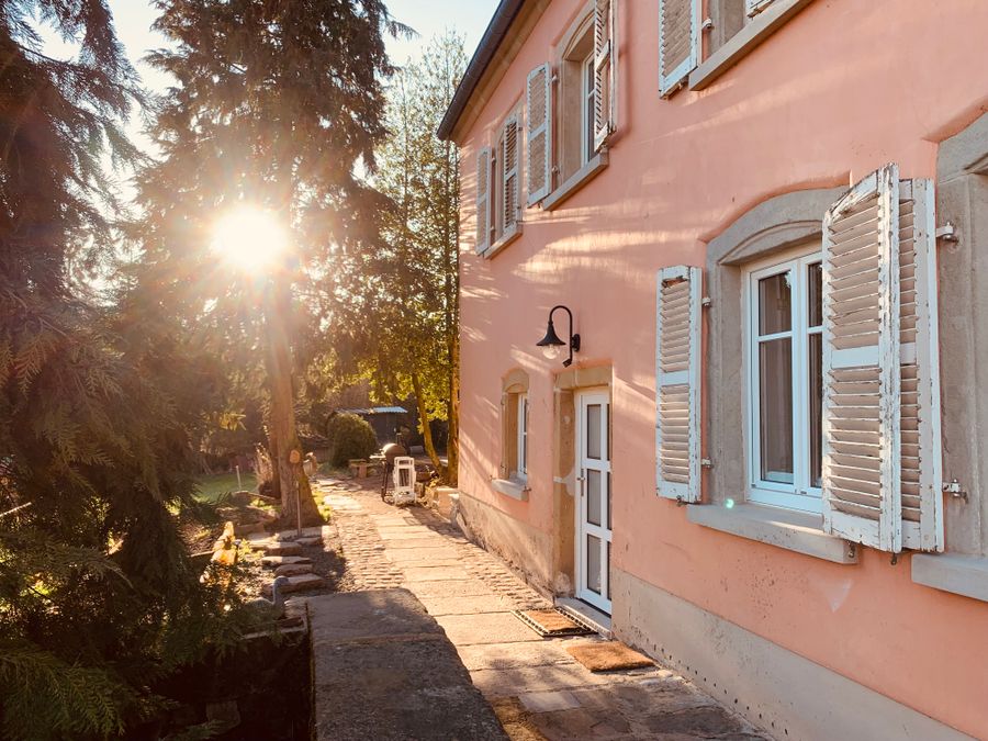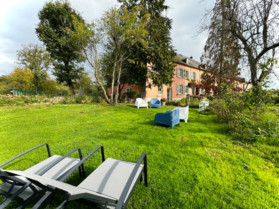 Garden: two large lawns with old trees. Grilling is of course possible. We have dogs that live in a large fenced area as well as cats that roam freely. We therefore ask dog owners to keep them on a leash in the yard. Thank you!