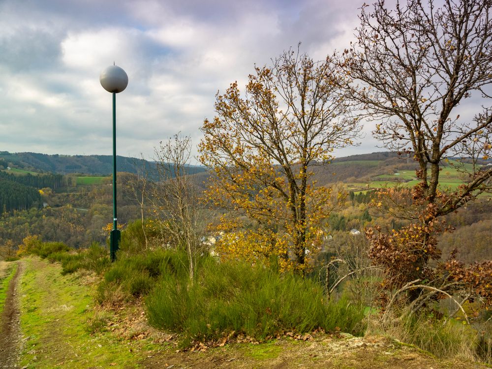 Het uitzichtspunt “Bomm” ligt boven Kautenbach en heeft een bijzonder verhaal te vertellen. In 1913 liet de eigenaar van het station, Peusch, “eng Bomm” bouwen - een bolvormig bouwwerk dat majestueus op een dennenboom troonde. Dit opvallende uitkijkpunt viel echter tijdens beide wereldoorlogen ten prooi aan de Duitsers. Sinds 1947 staat de “Bomm” weer overeind - dit keer op een stevig ijzeren onderstel.
