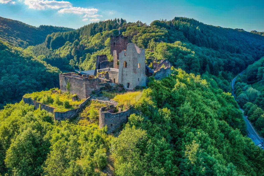 Stap terug in de tijd in Kasteel Brandenbourg. Dwaal door de ruïnes, stel je het verleden voor en geniet van het adembenemende uitzicht op de Éislek.
