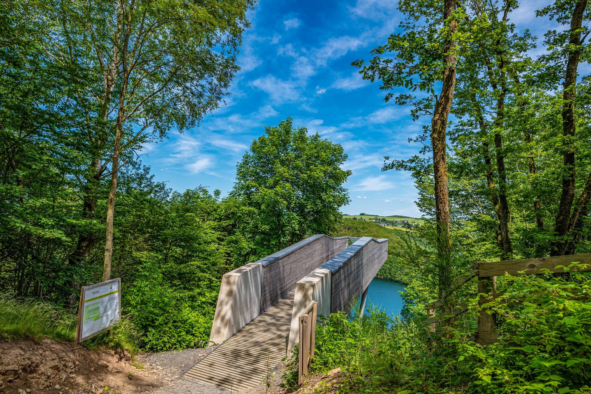 Het panoramaplatform Belvédère Burfelt ligt op slechts een paar minuten rijden van de Belgische grens. Het is gebouwd in 2016, verheft zich 70 meter boven het meer van de Boven-Sûre en nodigt u uit om te genieten van de ongerepte natuur.
