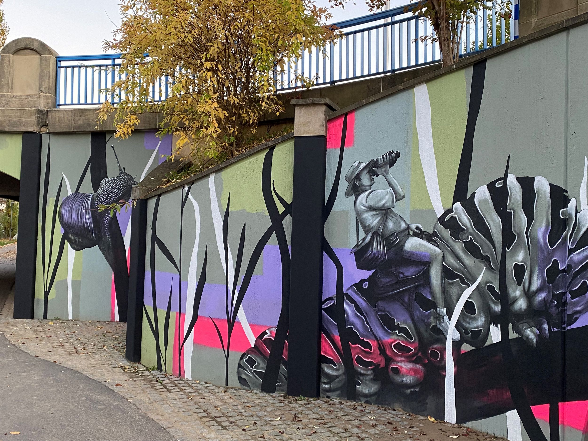 In het Parc de l'Alzette is het kleurrijke werk te bewonderen van de Ettelbruck kunstenares Martine Koetz, die op speelse wijze de relatie tussen mens en natuur bevraagt.