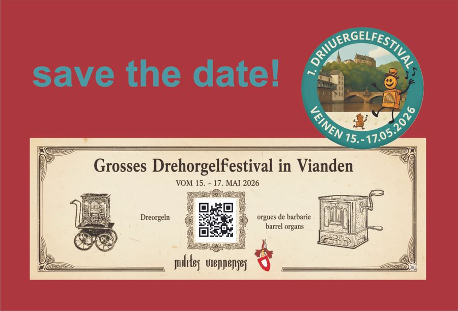 The 1st International Barrel Organ Festival Vianden brings together musicians from different countries, who enliven the streets of the medieval town. The centrepiece is the town square with fairground games "like in the old days", a hobby market and glass plate photography. The old cinema hosts an exhibition of historical musical instruments. An experience for the whole family.