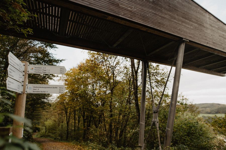 Het water dat je steeds vergezelt op deze tocht zal alle aandacht opeisen - vanaf het strand van Insenborn en vooral vanaf het uitkijkplatform Belvédère Burfelt. Nieuwsgierigheid en vragen zijn welkom in het ontdekkingscentrum van het bos. De gebeeldhouwde houten figuren houden je gezelschap tijdens een picknick aan de oever van het meer.