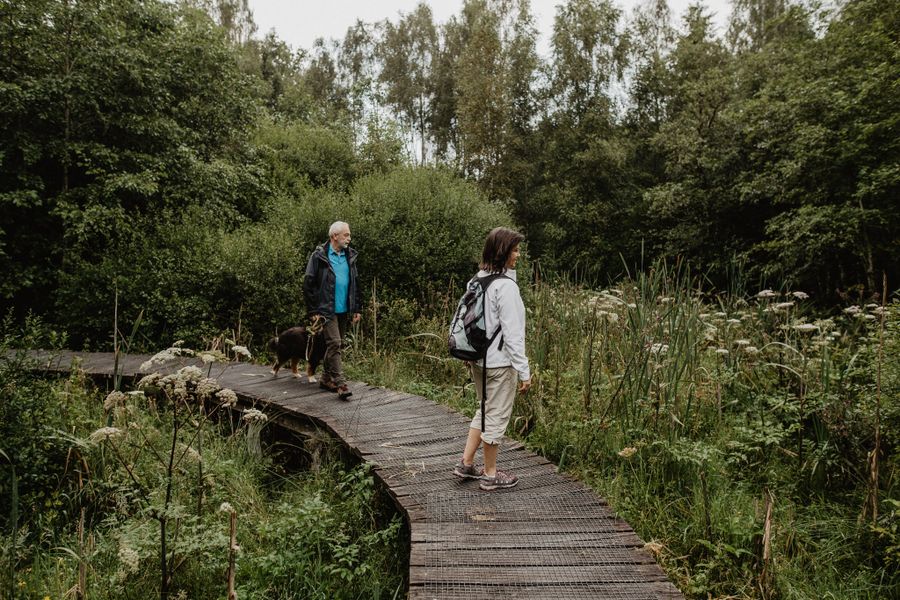 De natuur speelt op dit pad de hoofdrol. Je wandelt door het natuurreservaat Conzefenn over verschillende ondergronden- drassige weiden, hoge grassen, heidevelden, soms zelfs loopbruggen-en langs de meren van Weiswampach. Als je goed oplet ontdek je arnicaplanten en de dagpauwoog, een zeldzame vlindersoort.