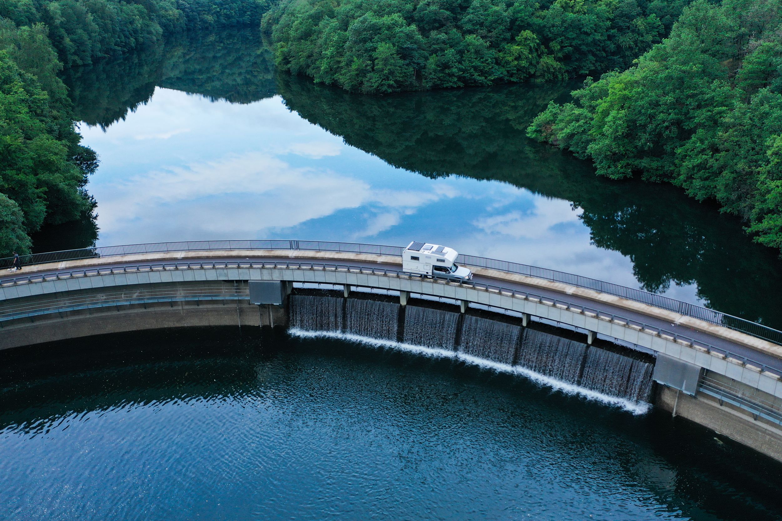 The Bavigne dam, an integral part of the Upper Sûre reservoir. Constructed in the 1950s as an extension of the Esch-sur-Sûre Dam, this strategic water source required the relocation of several mills and farmsteads nestled in the valley.