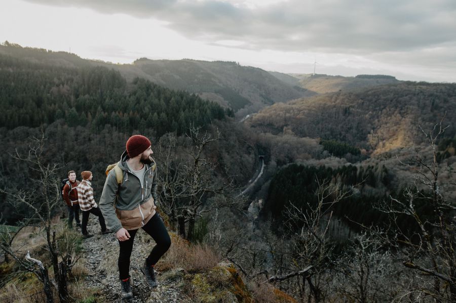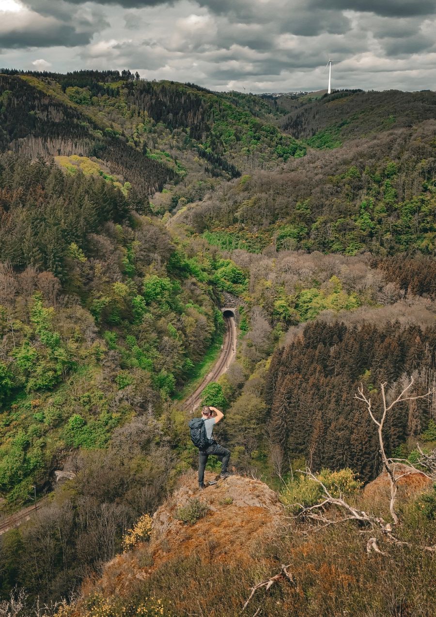 The Hoflee viewpoint near Kautenbach offers impressive views over the Wiltz Valley and leads hikers along narrow rocky ridges through the wooded hills of Éislek.