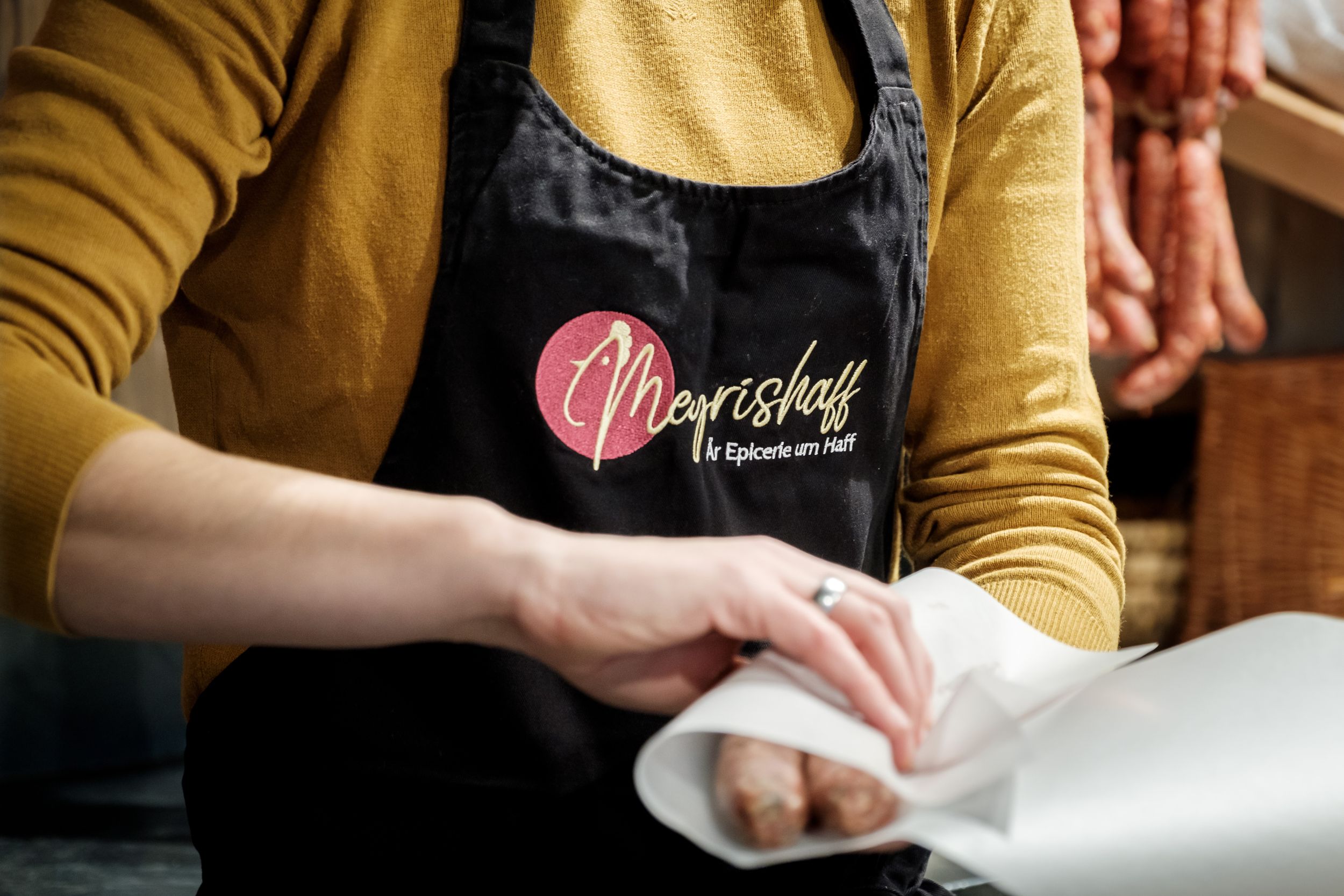 Long description: Meyrishaff is a farm located between the village of Bastendorf and the Selz, home to free-range hens, Angus cows with calves and sheep. The farm shop offers products from the farm as well as a wide selection of other regional goods. The range includes meadow eggs, meat, potatoes and strawberries. Fields are cultivated with spelt, triticale and sunflowers. In addition to purchasing high-quality regional products directly from the farmer, visitors can book tastings and guided farm tours. A 24/7 fresh product vending machine is also available.
