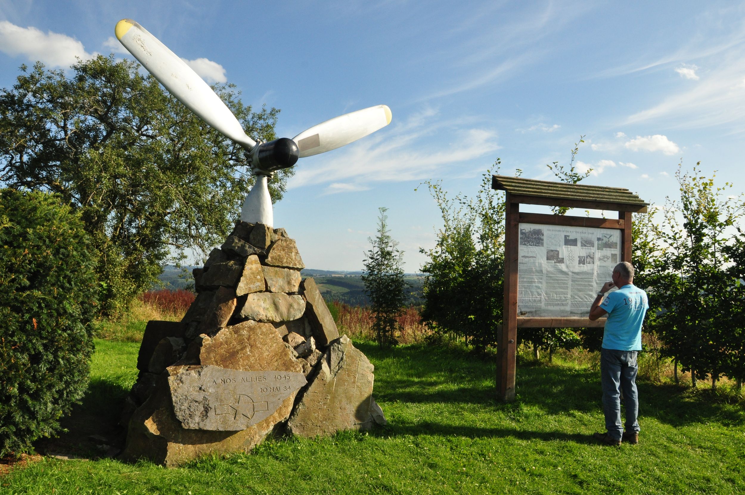On 13 April 1944, the 8th Air Force bombed the Schweinfurt ball-bearing factories a few minutes after the Luftwaffe had attacked the unescorted formation during which Sgt James H. YOUNG, a machine-gunner aboard "The Joker", was killed. The aircraft was in distress, so the airmen jumped between Vielsalm and Bérismenil. Hearing a low-flying aircraft, the villagers of Bérismenil went out to see what was happening. Three parachutes were drifting across the sky. "The Joker hit the hill "Les Crestelles" at around 3.00 pm and the fire spread up the hill. On arrival at Les Crestelles, the mayor, Joseph MOTTET, and the villagers searched for any survivors, but found only the charred body of James YOUNG. Other villagers set about extinguishing the fire.