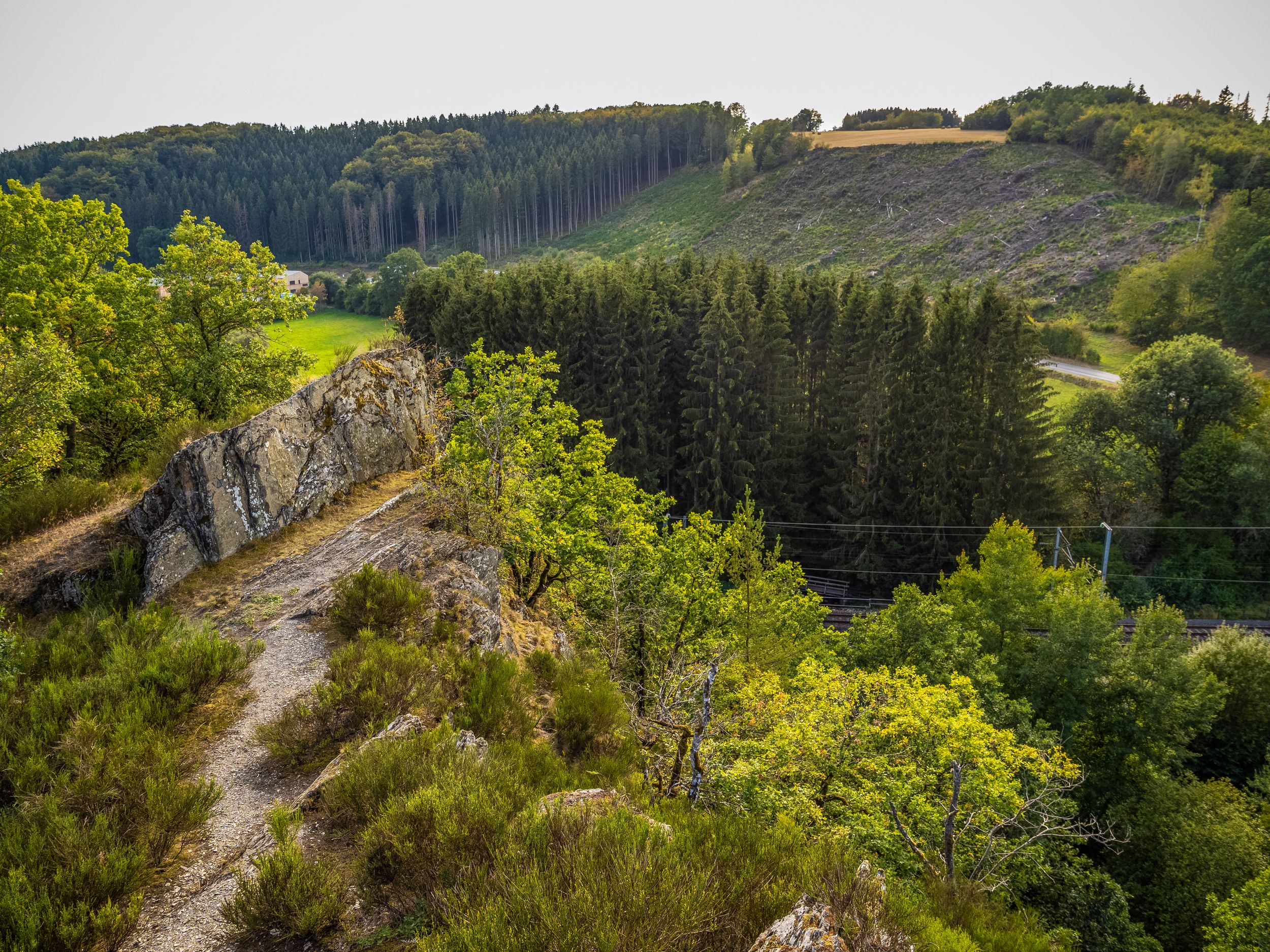 The name ‘Lee’ means ‘rock’ in Luxembourgish and can be found in many place and field names. This is also the case here, where the Sideschlee forms a rocky ridge of typical regional slate rock. Hiking along the Sideschlee allows you to experience these special geological features of Éislek up close. The rocky ground and the sometimes narrow, stony paths require good footwear.