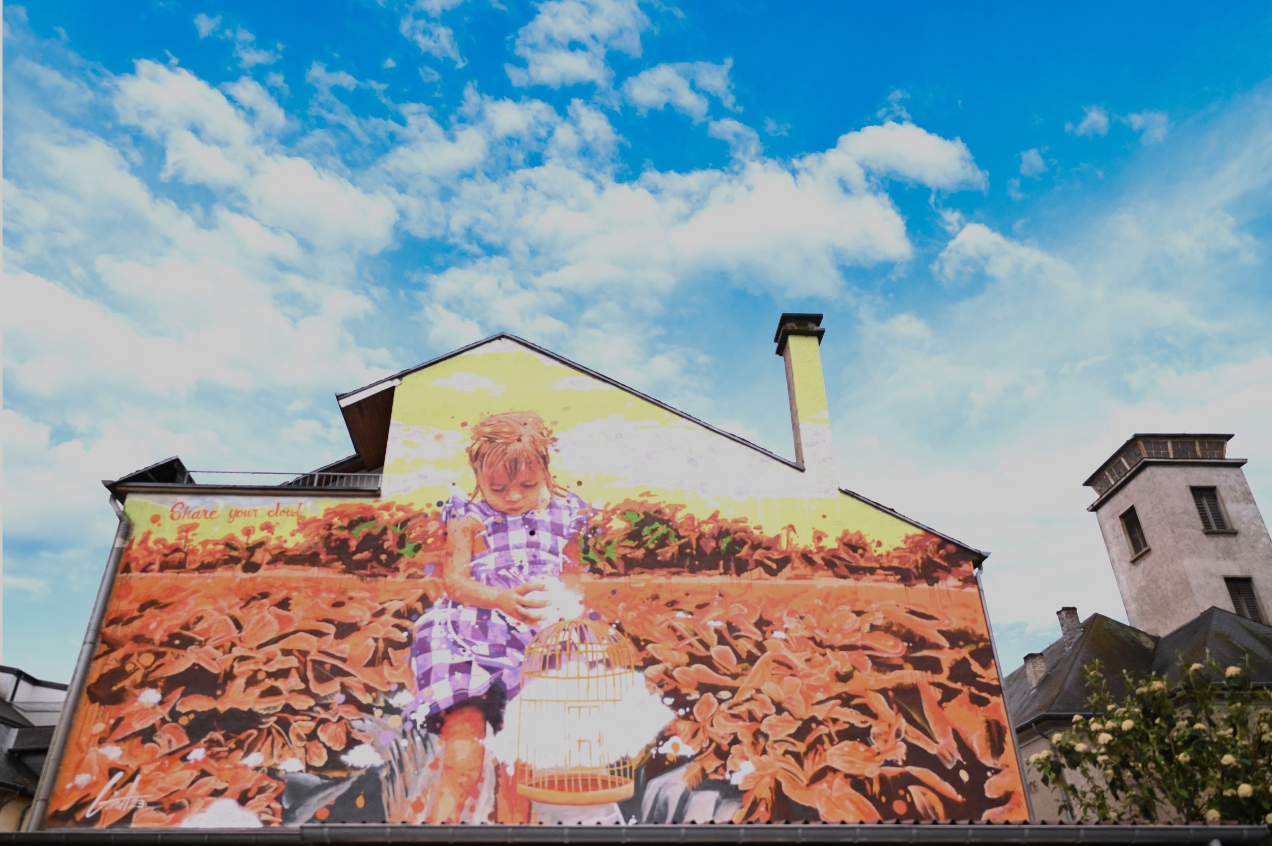 In 2023, Luxembourg artist Raphael Gindt created a graffiti near the parking lot at ‘Place de la Libération’ as part of the ‘Share your Cloud’ campaign, which raises awareness about youth mental health.