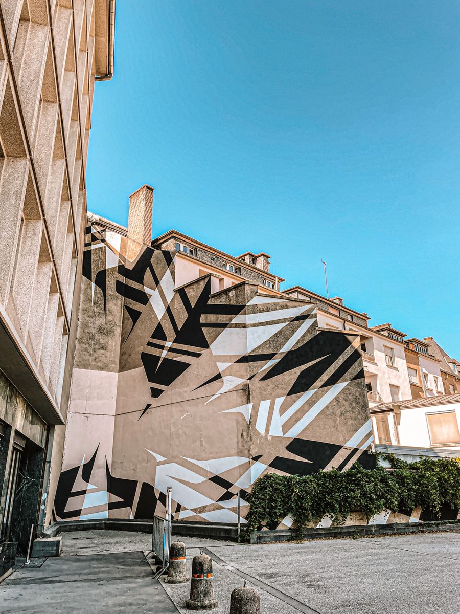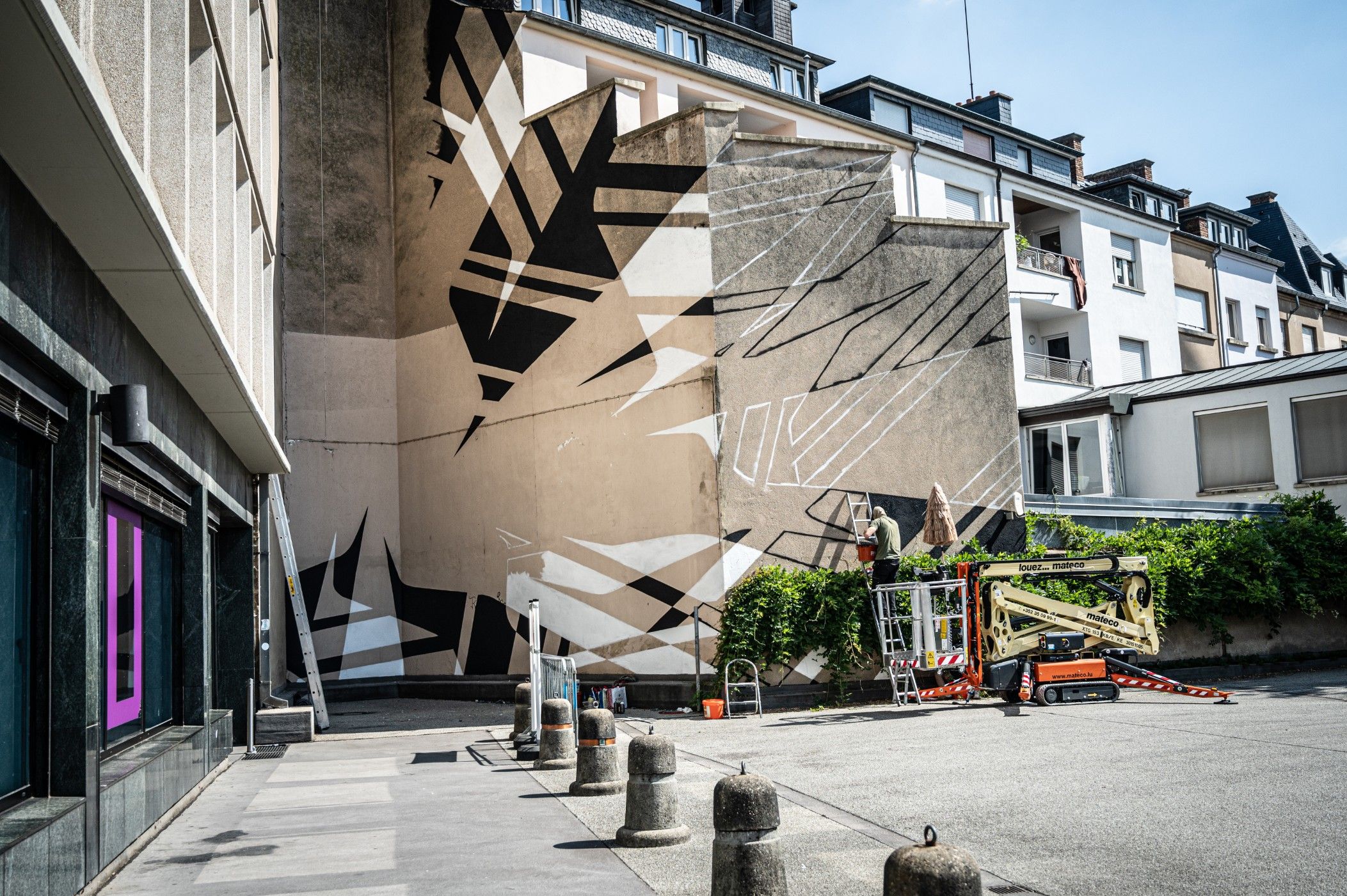 From the parking lot in front of the Ettelbrück town hall, the view is directed towards the graffiti by Luxembourgish artist Spike.