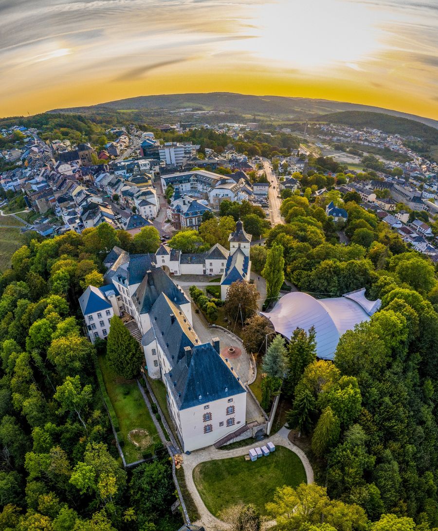 The town of Wiltz, also known as the “capital of the Ardennes,” impresses with its castle and its monumental stairway leading to the Wiltz gardens. Since the 1950s, the castle's stairway and façade have served annually as the setting for the renowned European open-air theater and music festival Festival de Wiltz.